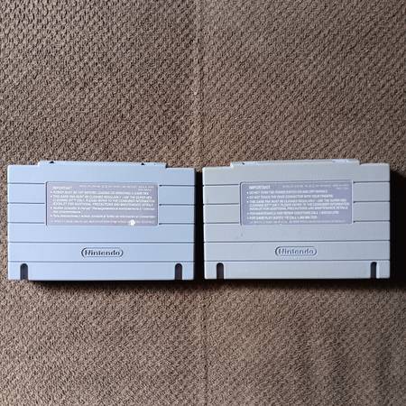 2 cartridges only. Has wear. See pictures. $20 ea. Possible trade for Secret of Mana SNES cartridge excellent condition or Aladdin and The Lion King(SNES or Sega)?