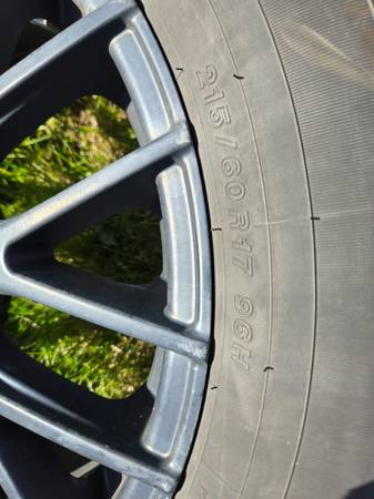 DR691775054073BF1 wheels with Yokohama Avid Ascend LX tires 21560R17. Tires have only about 5k miles on them. What you see is what you get. There is some very minor scuffing on the rims that was there when I bought them. I had these wheels on a 2014 C-RV and have an extra set of 73mm hubcentric rings if wanted. Only getting rid of these because I cant use them anymore