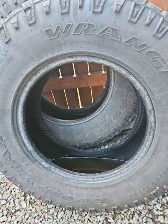 4 used tires, Goodyear Wrangler 255 75 17 255/75/17 255/75R17 255-75-17 2 tires 3/32 tread 2 tires 5/32 tread Four12-596-8430 call after 5 weekdays, anytime weekends. Leave a message if I do not...