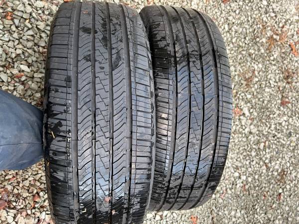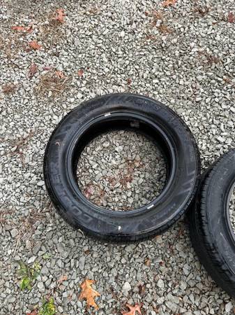 Hello I have 2 225/60/18 tires forsale. They both around 8/32 of tread with no holes or issues. Was going to put back on for winter but I sold the car. 100 cash for both. i can also mount and balance and dispose youre old tires for 40 more bucks Please call/text anytime. show contact info