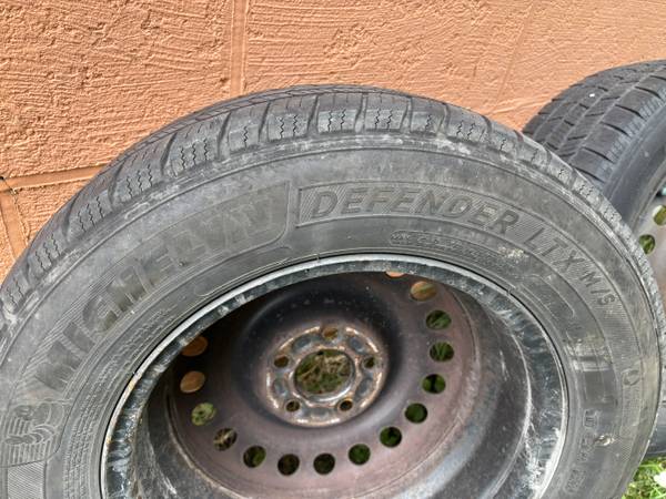 Set if four Michelin defender LTX M/S 205/65R/15 tires mounted and balanced on 15" 5x108 rims. Tires and rims $130 OBO can be sold separate for tires $100 and $40 rims.