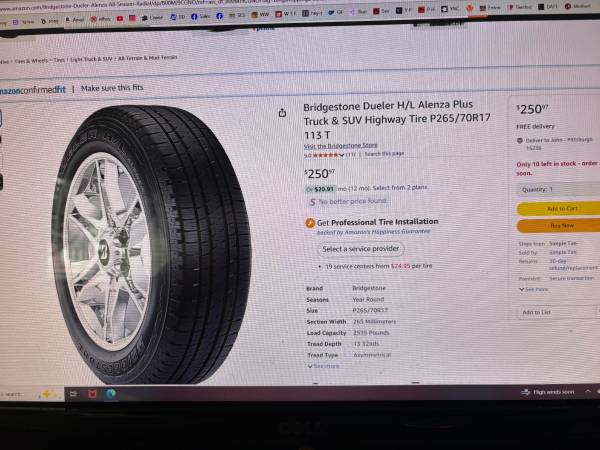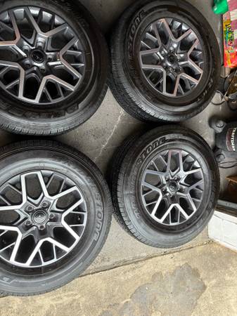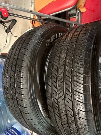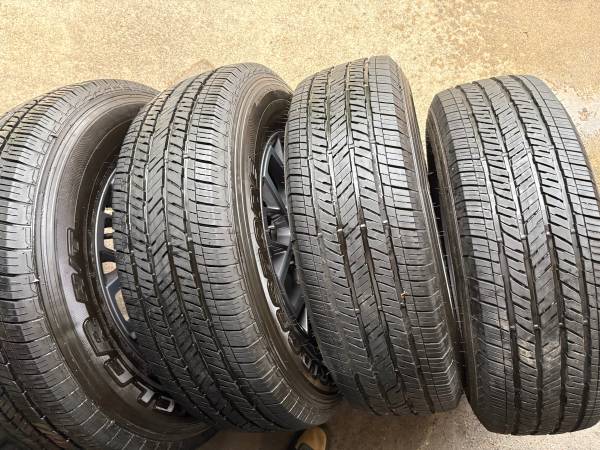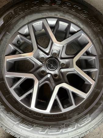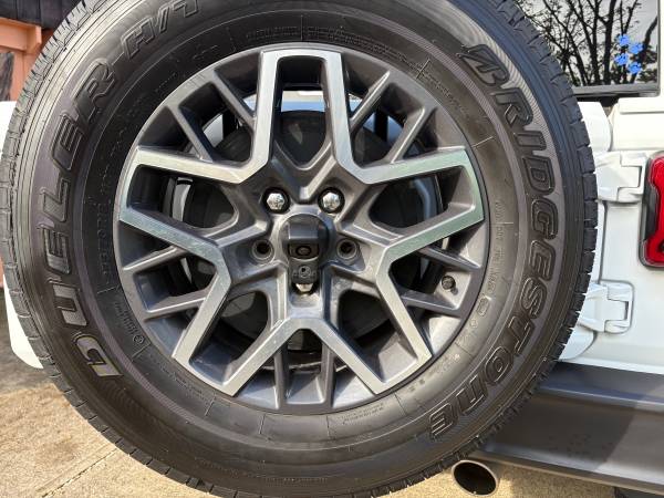 OEM Jeep wheels & Tires. Includes lug nuts & TPMS air system. 10 / 32 tread. Like new. Bridgestone Dueler tires. Original. 255/70R/18. Off of 2024 Wrangler. Will fit JK or JL. Great upgrade from steel wheels. NO SCRATCHES OR ROADRASH. Only 3500 miles on tires. Wheels org. cost $279 each + tax. Tires about $225 each = tax. Mine $1500.