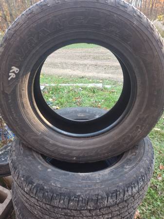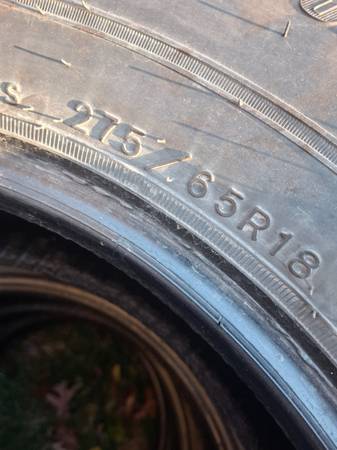 275/65R18 tires. All wore even no plugs or patches. About half tread