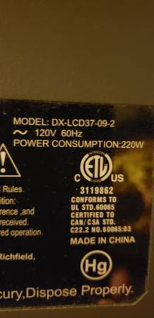Dynex DX-LCD37-09-2 - 37-inch television Has a broken screen - do not know if it can be repaired. Probably only worth scrapping the components for repair of other units or recovery of any precious...