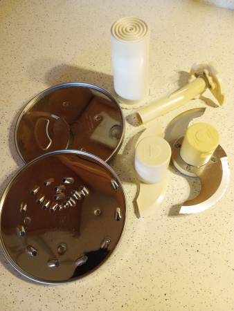Cuisinart Food Processor with all attachments available for pickup. Works but is temperamental - can be used for parts, attachments, or to repair. Clean, no chips, cracks, etc..