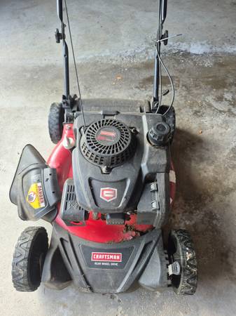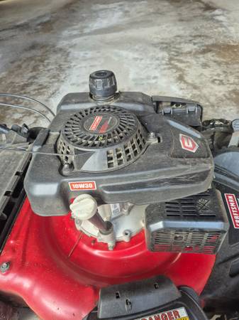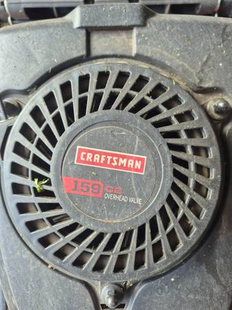 Craftsman 159 CC engine. The deck is shot, rusted through. Engine works good. You will be picking up the entire mower.