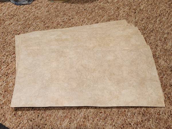 Vinyl cabinet liners from our old kitchen cabinets. They don't fit the new cabinets. These were cut from vinyl flooring and are sturdy. Six 22"x22" Three 19"x19" Sixteen 11"x22"