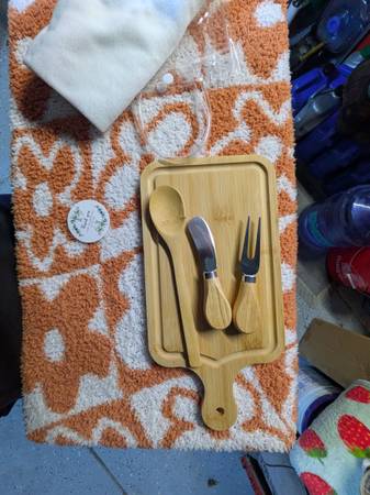One lamp, large dog collar, shower head, cheese cutting board,chandelier light bulbs,glass vases.all for free
