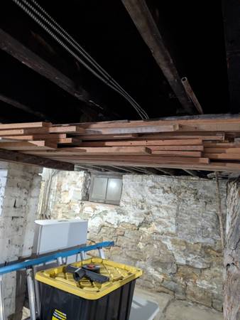 A bunch of scrap wood stored in the basement, various lengths and sizes. Good for projects, firewood, or repurposing. Free – you must haul it away yourself. Basement access, bring help if needed....