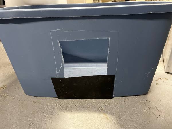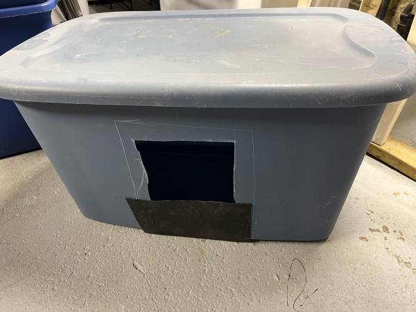 I used this bin as a litter box previously. The opening is cut almost to the bottom though so I attached hard rubber as a shield. I’m not sure if it’ll work as an outdoor shelter? I hope so! Otherwise, I’m planning to toss. It seems slightly smaller than the 35 gallon ones I use for storage.
