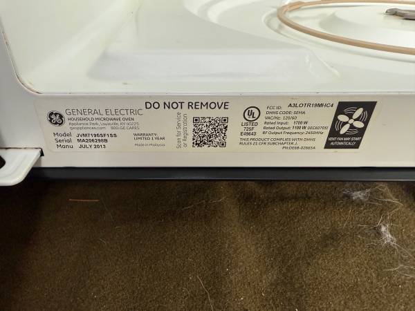 I have a non-working GE Stainless Steel Over the Range Microwave Oven that I’m giving away free for parts, repair or scrap.